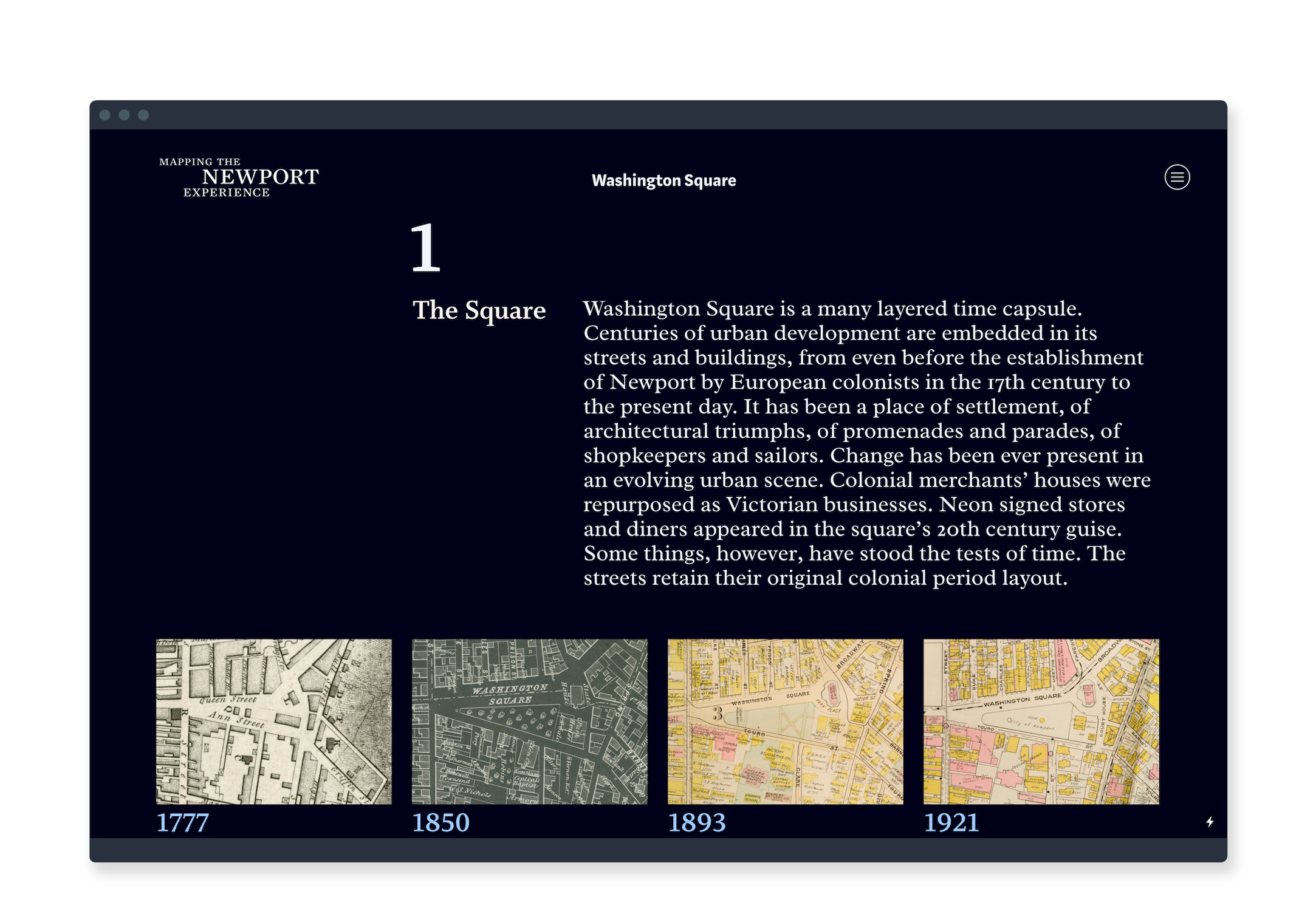 Identity & web design for a Newport Historical Society project translating an illustrated essay